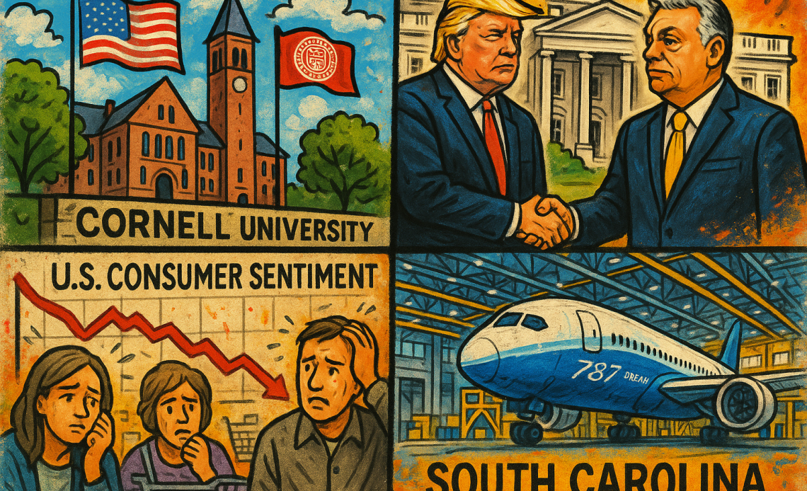 The post US digest: Cornell restores federal research funds, consumer sentiment falls, Boeing expands 787 plant appeared first on Invezz